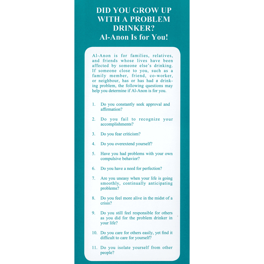 Did You Grow Up With A Problem Drinker? This is a twenty-question series for potential new members who might identify as the adult child of one or more drinking parents.