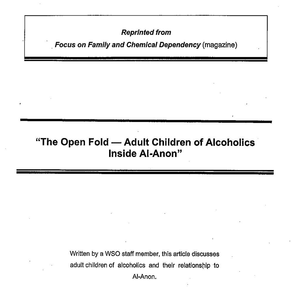 The whole article discusses in particular the problems adult children of alcoholics experience having a founding relationship to Al-Anon Family Groups. It posits the “adult child” (child of one or more drinking parents) as someone whose life has been profoundly affected by the atmosphere and/or alcohol-affected behaviours experienced while growing up. To do that most effectively it also lends from the Introduction provided in the pamphlet, Al-Anon Sharings from Adult Children (P-47), to help set the scene for what is called “identification” inside Al-Anon meetings: one member’s lived experiences are highly relatable to the next person’s own experiences.