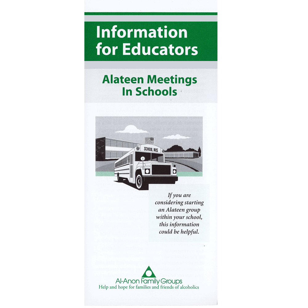 The 'Information for educators' pullout quote displayed on the front of the pamphlet states: “If you are considering starting an Alateen group within your school, this information could be helpful."