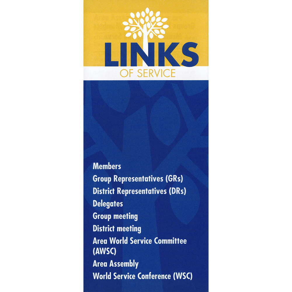 A light-hearted illustrated explainer setting out the 'Links of Service' available Al-Anon Family Group members who want to explore the third leg of a stool called (our) Three Legacies (obtain your copy to find out!).