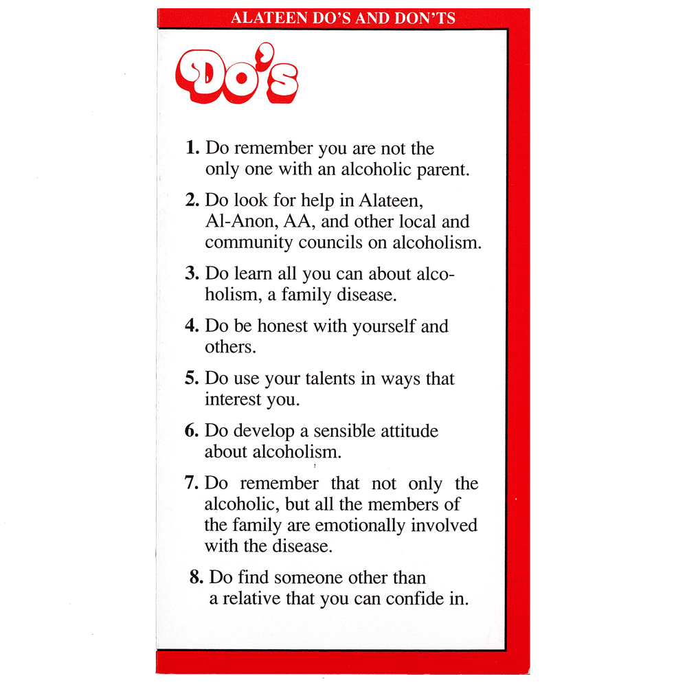 Do's and Don'ts, Alateen is a handy, pocket-sized help at hand for teens.