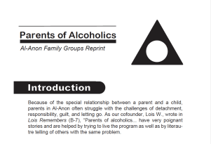 Parents share how they began to have compassion and eventually grow to forgive themselves and their sons and daughters in the process. The stories are real; the benefits of an active program of Al-Anon recovery are also real, generating real results which are demonstrated in the parents’ personal stories as improvements to his or her own quality of life, and general manageability as well as the benefits of progressing one’s own life journey in greater peace.